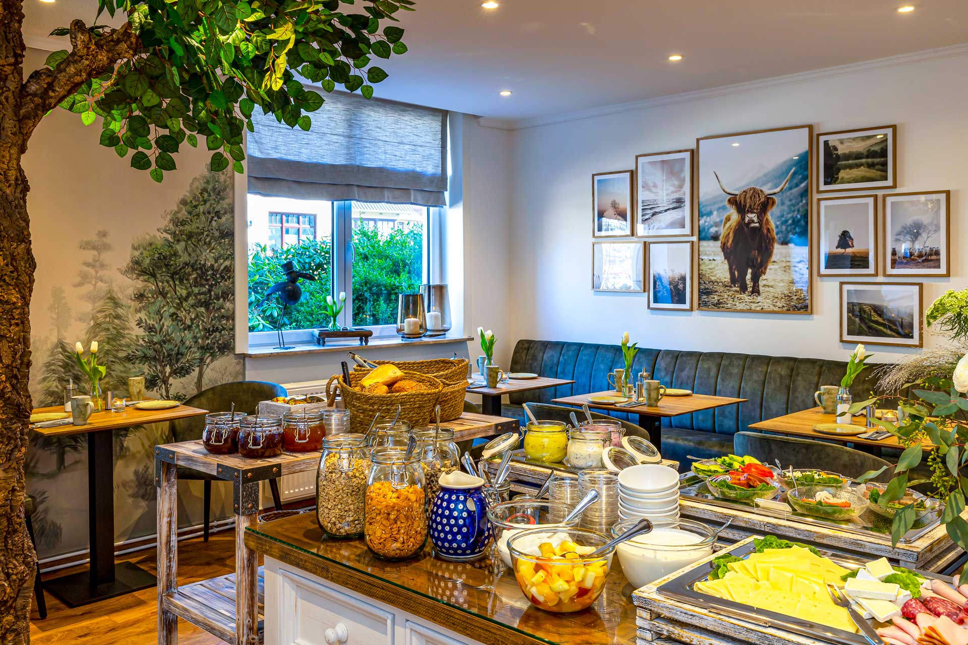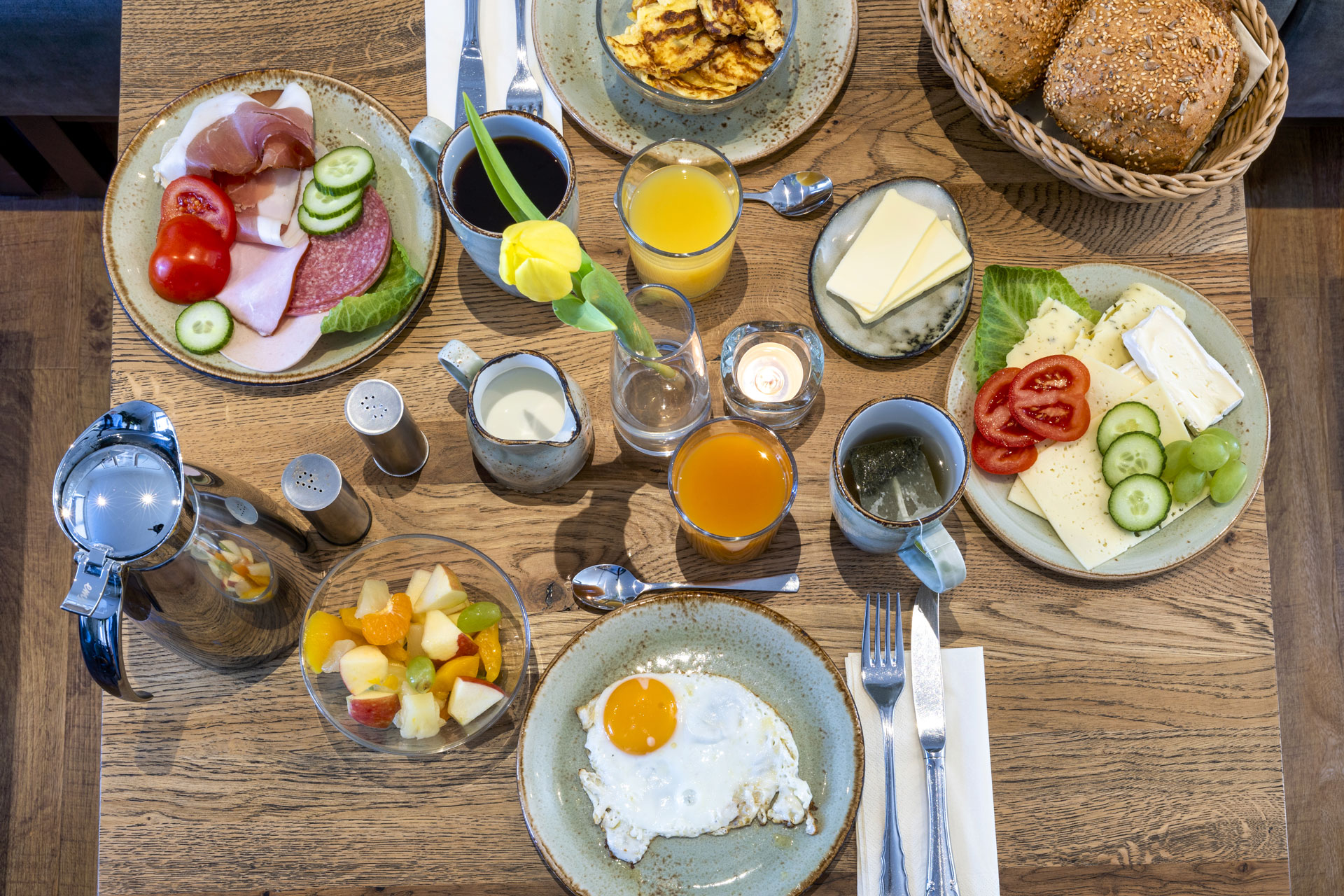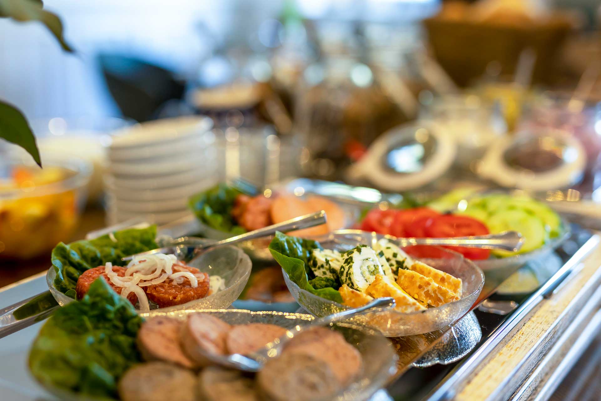 Wir wissen, dass Geschmäcker verschieden sind, deshalb ist für jeden was dabei, kaum ein Wunsch bleibt unerfüllt. Aufschnitt, Käse, Wurst und natürlich auch Fisch kommen bei uns immer frisch auf das Buffet. Neben süßen Sachen steht auch Deftiges wie Rührei, Spiegelei und Speck auf dem Programm. Die frischen Brötchen und Brote werden direkt von unserem regionalen Bäcker geliefert.