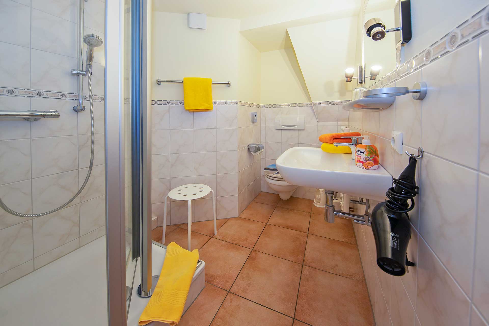Unsere Zimmer sind alle auf dem neuesten Stand und mit Dusche/WC, Flachbildfernseher und natürlich kostenfreiem W-LAN ausgestattet.